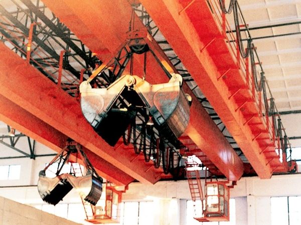 抓斗橋式起重機主要由箱形橋架、抓斗小車、大車運行機構(gòu)、司機室和電氣控制系統(tǒng)組成。取物裝置為抓斗。